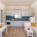Profitez de la cuisine équipée fournie par ces logements Sirens Villas et équipée d'une bouilloire électrique, d'un réfrigérateur et de la vaisselle pour votre confort.
